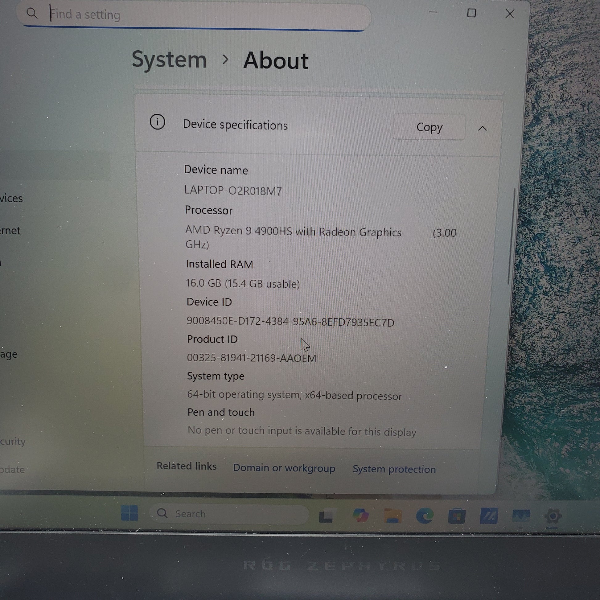 | Processor | Ryzen 9 4900HS |