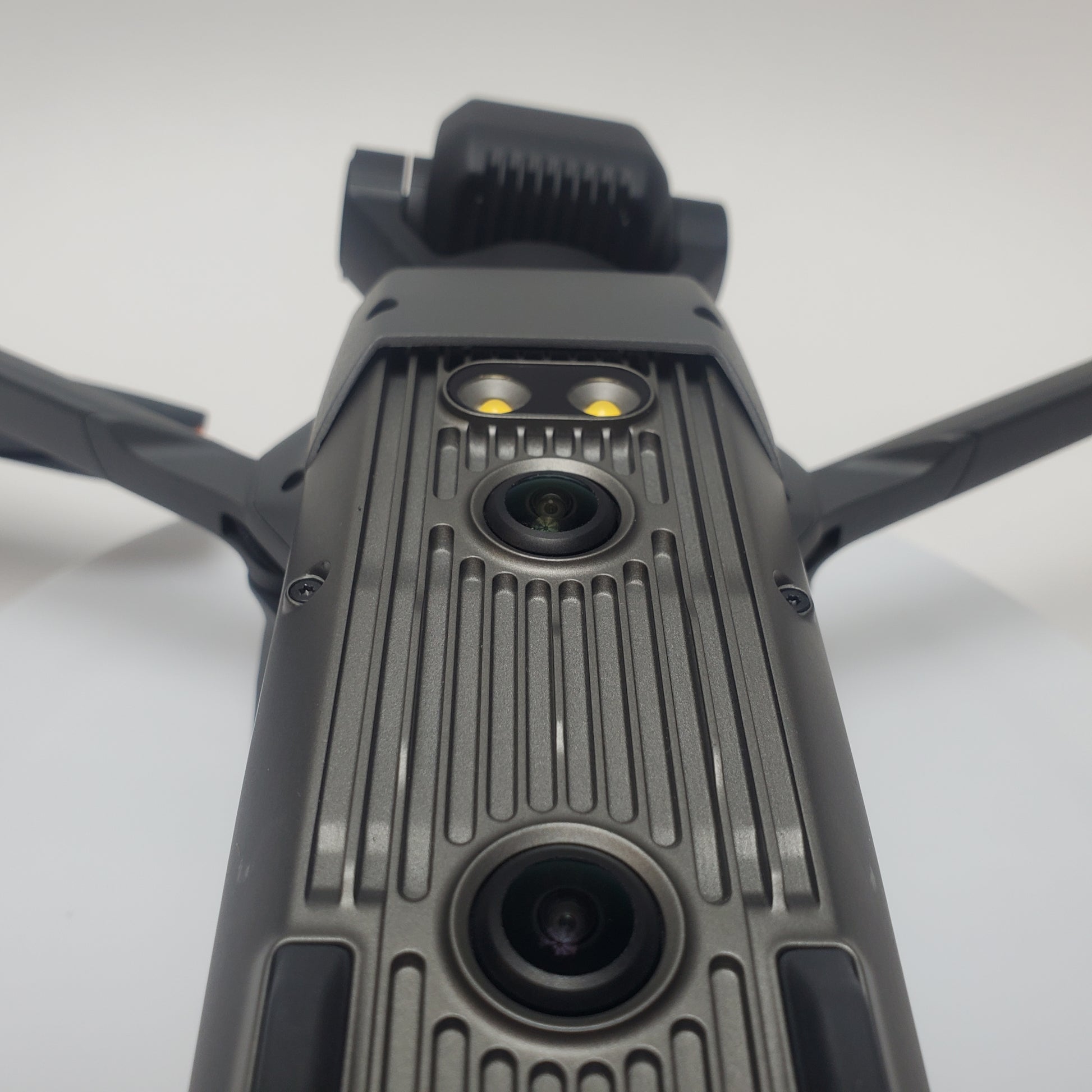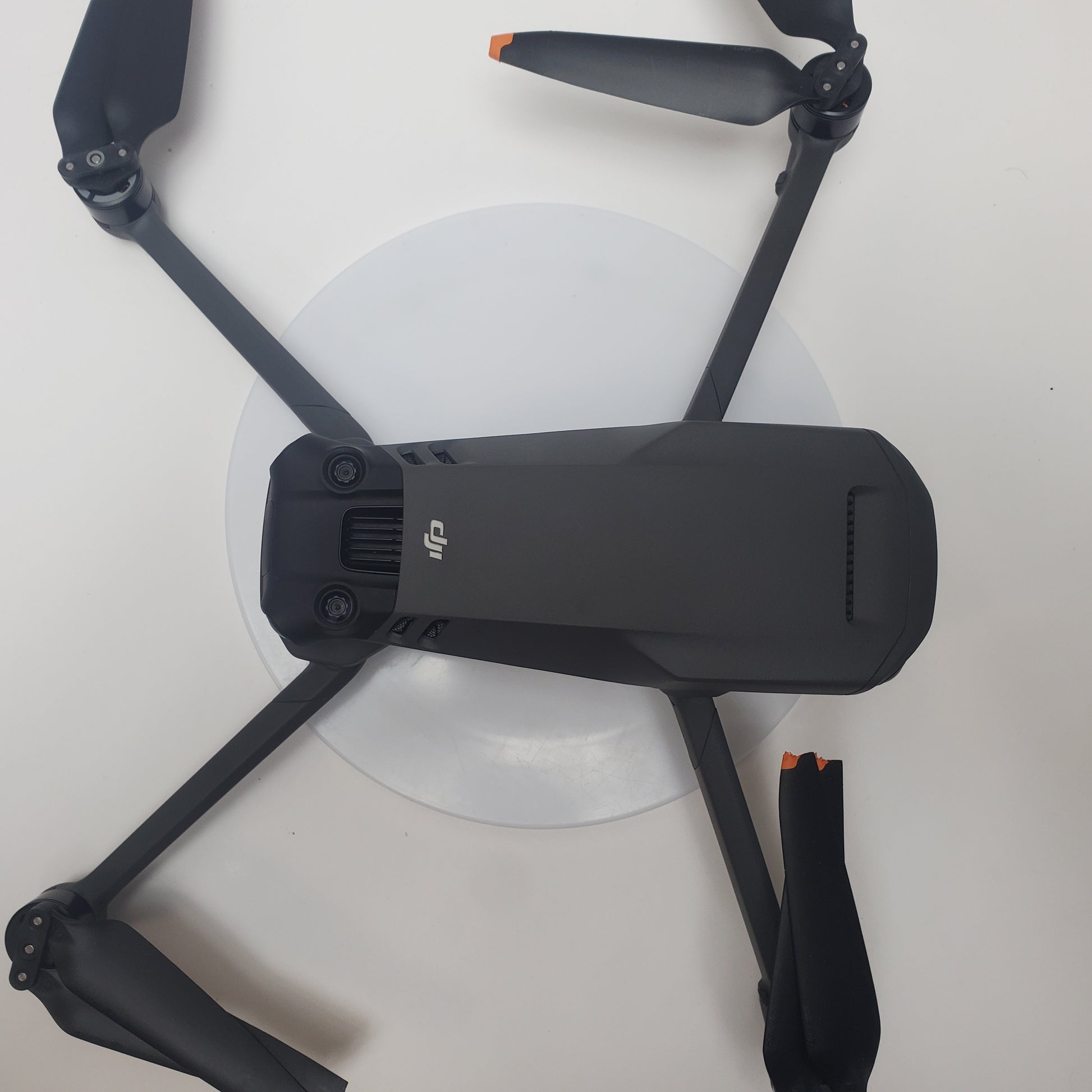 The drone body is in good condition, showing some scratches or scuffs from normal use, and has been cleaned. The propellers are in good condition, showing minor scratches or scuffs from regular use. The camera and gimbal are in good condition, with some scratches or scuffs from regular use. The remote is in good condition, showing some wear such as scratches or scuffs, and has been cleaned.