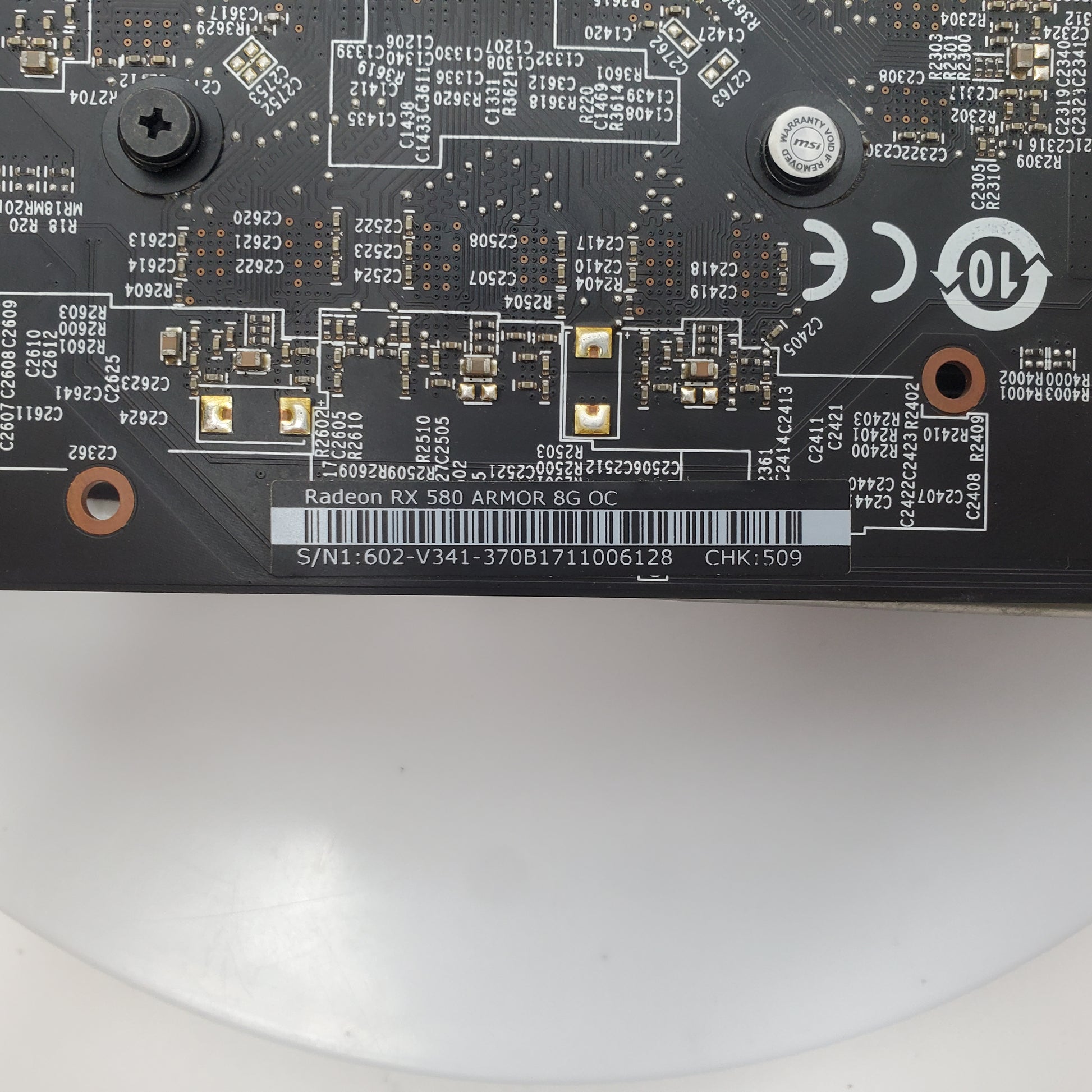 MSI AMD Radeon RX 580 Armor 8G OC 8GB GDDR5 Graphics Card V341